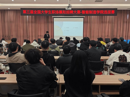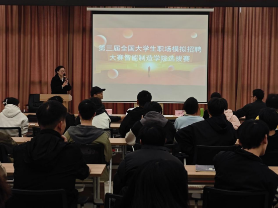 为贯彻人社部、教育部和全市关于促进高校毕业生就业的有关政策文件及会议精神,切实加强就业教育,推动实现毕业生更加充分和更高质量就业,4月2日,由智能制造学院党总支主办、智能制造学院团总支承办的智能制造学院第一届大学生职场模拟招聘大赛在学生活动中心学术报告厅圆满落幕。学院党总支副书记廖岚、学工办副主任胥媛媛、学院辅导员及学生代表100余人参加本次比赛。