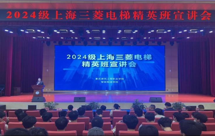 6月23日,2024级精英班专题宣讲会在学生活动中心多功能厅举行。上海三菱电梯有限公司重庆分公司人事经理娄中镧、西南培训中心副主任王棕、西南培训中心教务长高家军,智能制造学院党总支副书记廖岚、副院长吕佳、骨干教师代表和2024级学生参会。会上,人事经理娄中镧从行业发展趋势切入,详细介绍三菱电梯的技术优势与市场地位,并重点解读精英班培养方案。