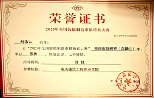 近日,在2025年全国智能制造虚拟仿真大赛重庆市选拔赛(高职组)中,我院工业机器人技术专业覃楚豪、刘锐、刘治江三位同学凭借扎实的专业知识、娴熟的操作技能,在激烈的竞争中脱颖而出,荣获一金两银的佳绩。