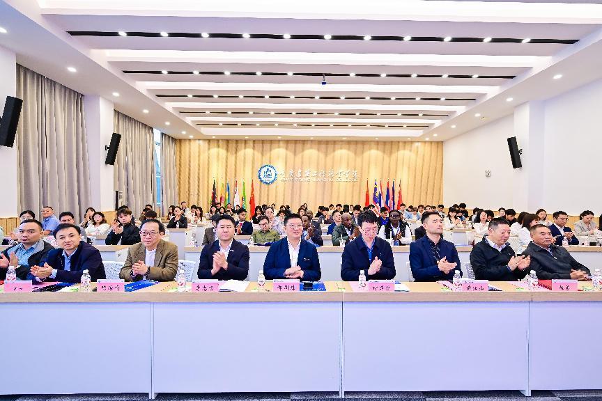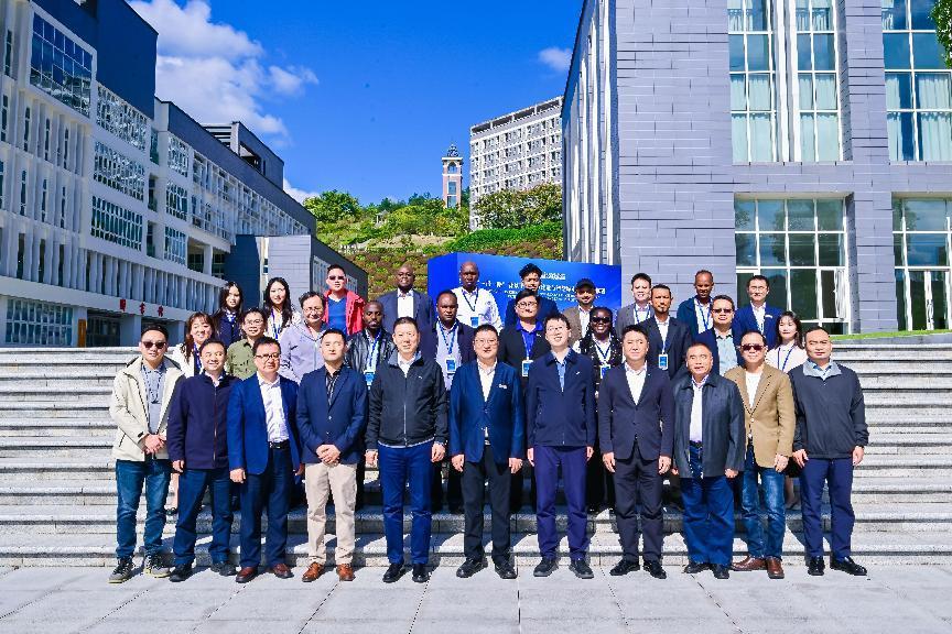 10月23日上午9:30,我校2025年“一带一路”背景下“智能建造与智慧城市”高级研修班开班典礼在学校思政厅顺利举行。重庆市住建委科技与对外合作处副处长付建丹、重庆市人社局职鉴中心技能合作部部长黄江山、中国驻埃塞俄比亚前经济商务参赞钱兆刚、中交集团人力资源部海外人力处处长楼勇、广联达科技股份有限公司助理总裁李忠宝、重庆对外建设集团有限公司一级专项员陈治奇、学校校长郑周练、全体研修学员以及合作企业代表、学校教师代表、国际学生参加了开班典礼。典礼由副校长杨旗主持。