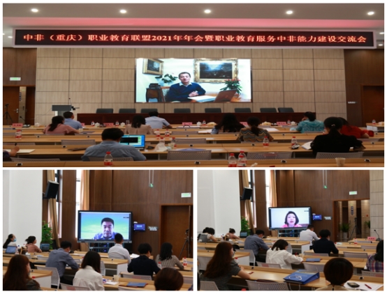 5月13日,由中非(重庆)职业教育联盟主办,我校和重庆电子工程职业学院联合承办的中非(重庆)职业教育联盟2021年年会暨职业教育服务中非能力建设交流会在我校举行。重庆市教育委员会国际合作与交流处李斌处长、重庆市教育国际交流协会秘书长乐勇出席会议。本次会议采用线上线下相结合的方式进行,70余家联盟成员单位、高职院校、企业代表共计100余人参会。会议由我校副校长郑周练主持。