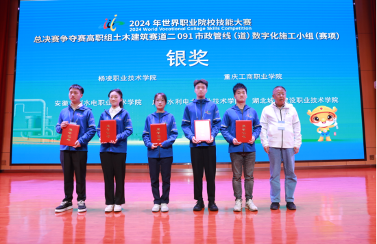 10月27日,2024年世界职业院校技能大赛总决赛争夺赛高职组土木建筑赛道二市政管线(道)数字化施工小组(赛项)在我校圆满闭幕。争夺赛重庆赛区组委会副主任、重庆市教育科学研究院院长蔡其勇,赛项裁判长、包头铁道职业技术学院建筑工程系副主任闫宏生,学校党委副书记、校长郑周练,副校长杨旗,为赛项服务的相关裁判组、监督仲裁组成员,全体参赛队领队、指导教师、选手与师生代表参加闭幕式。