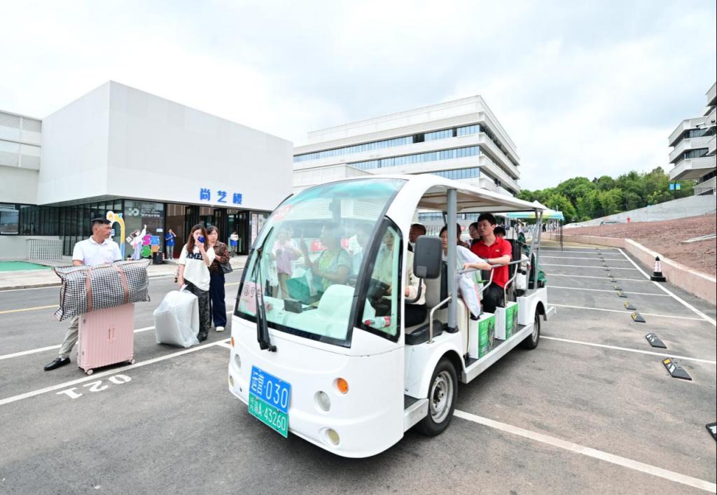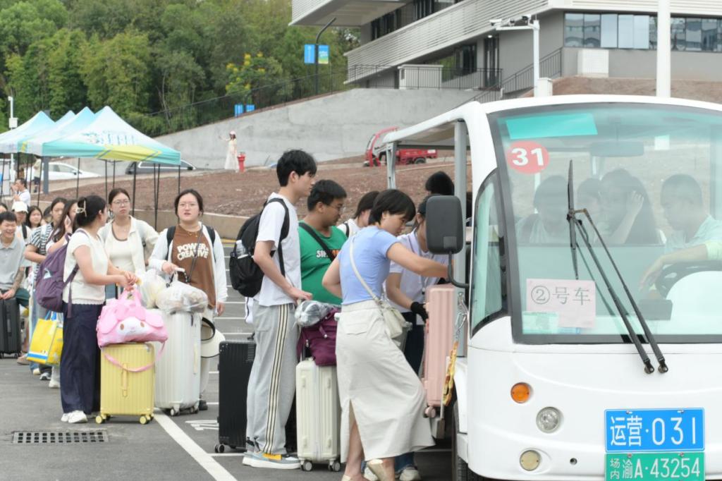 学校对今年的迎新工作极为重视,面对两校区运行的新情况,提前着手、精心筹备、周密规划,制定了科学详尽的迎新方案。学校各部门、全体师生员工齐心协力,积极投入到迎新准备工作中。为方便新生,提前开通线上选床位、缴费等便捷通道,并详细发布报到指南,涵盖从交通路线到入学手续办理的每一个细节。在重庆北站、重庆西站、重庆东站等多个交通枢纽,都安排了热情专业的志愿者团队接站,引导新生乘坐迎新车辆前往学校报到。同时,考虑到两校区运行,特别安排了广阳校区与东站校区之间的穿梭车,方便新生及家长往来。