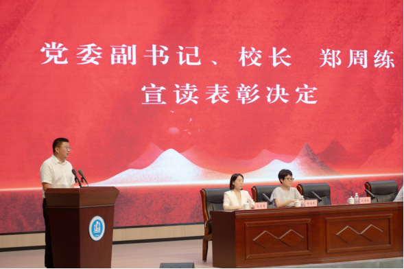 党委副书记、校长郑周练教授通报了2024-2025学年度教师获奖情况,并宣读了表彰决定。大会对国家级奖项获得者、“优秀教师”“优秀辅导员”“优秀教育工作者”“师德师风标兵”等先进个人进行了表彰,与会领导为获奖教师代表颁发荣誉证书。