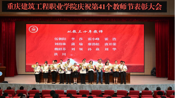 9月10日下午,学校在东站校区图书馆报告厅隆重举行庆祝第41个教师节表彰大会。市住建委领导、全体校领导、教职工及学生代表、离退休教职工代表等800余人参会。