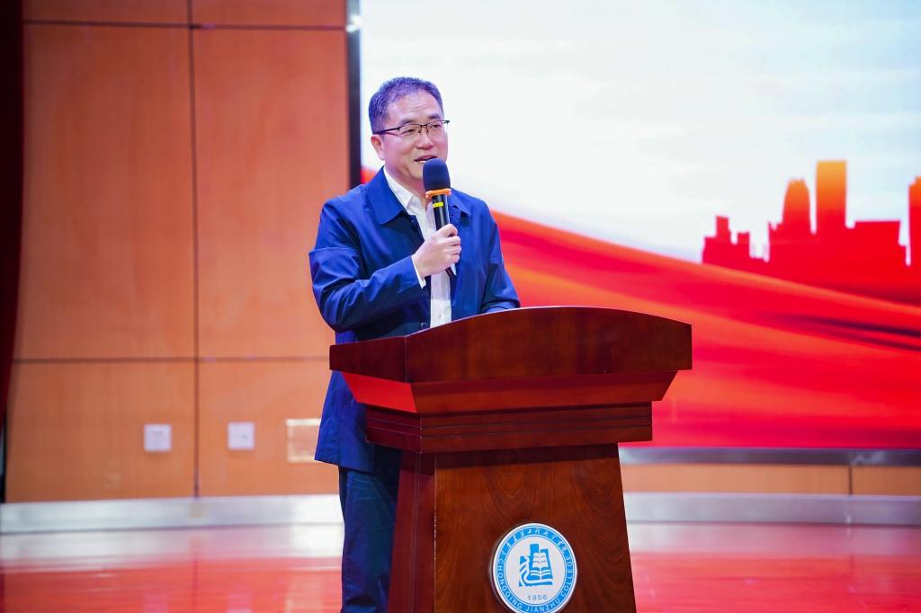 郭光亮作总结讲话。他首先分享了自己的现场感受:“聆听老师们的育人故事,让我今天感受到了温暖和力量。”他指出,选手们的真挚讲述展现了深厚的教育情怀,比赛组织有序、现场氛围热烈。他希望全体教师以此为契机,将育人初心融入日常教育教学,凝心聚力,共同为推动学校高质量发展、建设教育强国贡献力量。
