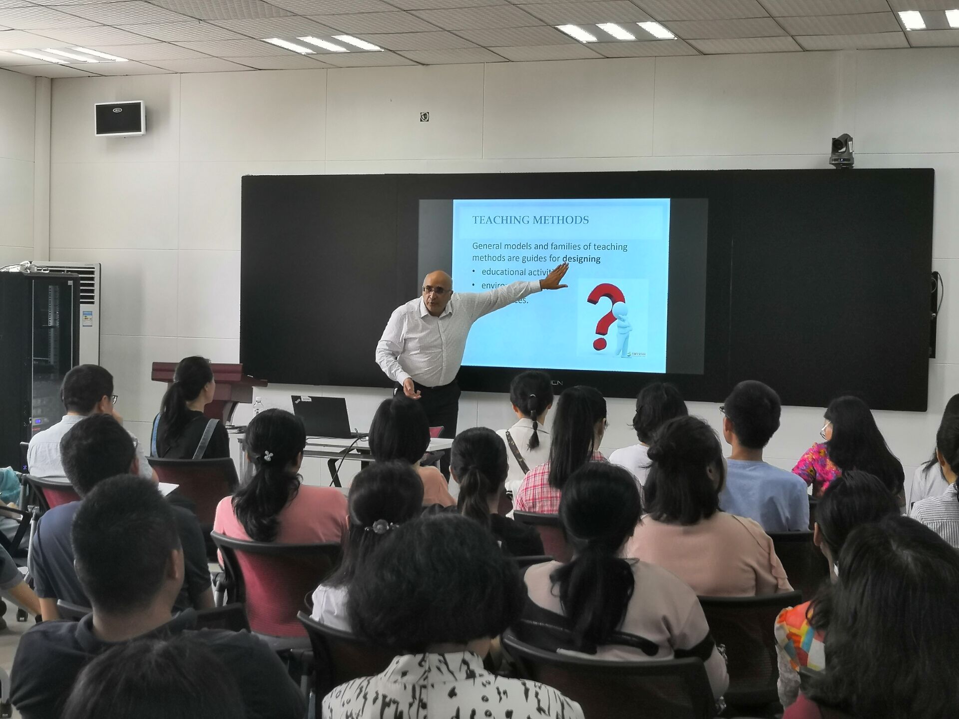 Bajaj Deepak博士首先介绍了教学方法的主要模式,随后分享了教学实用技巧并针对我院实际提出了很有价值的建议。讲座过程中,邀请了土木工程系唐丽、建设管理与房地产系罗丹、交通与市政工程系邵丽娜老师分别分享了自己所授课程的教学方法,最后Bajaj Deepak博士组织大家开展了关于课堂管理和教学方法讨论的互动活动,老师们积极参与,纷纷提出自己的经验和建议。