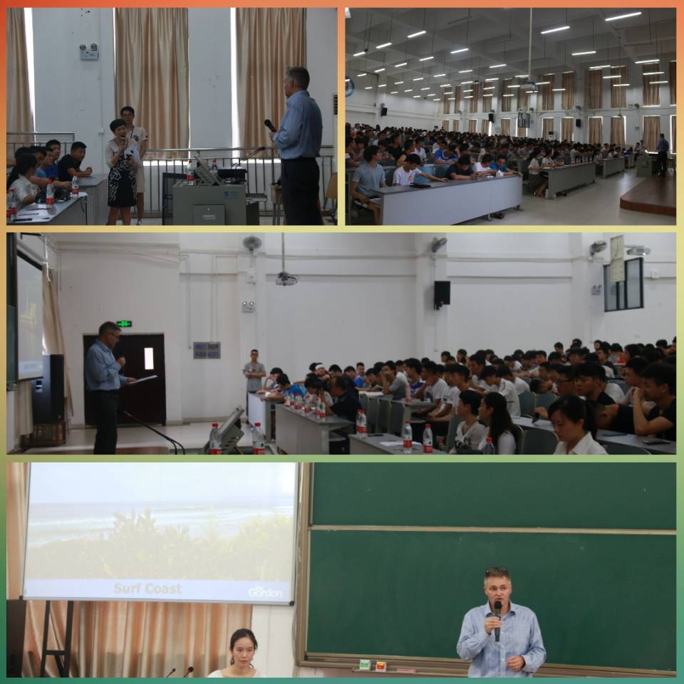 接着,Mr. Wayne介绍了高登职业技术学院的基本情况,并衷心希望与我院开设中澳合作班能够圆满成功。高登职业技术学院是澳大利亚政府公立教育机构,成立于1887年,是澳大利亚最大的高等技术学院之一。该学院是澳大利亚职业教育与培训界的佼佼者,教学质量享有盛誉。Mr. Wayne以自身经历来勉励同学们,为我院拥有如此完善的设施设备和实训场所进行技能学习而感到欣慰,并通过展示PPT,让大家了解澳大利亚的人文风情。