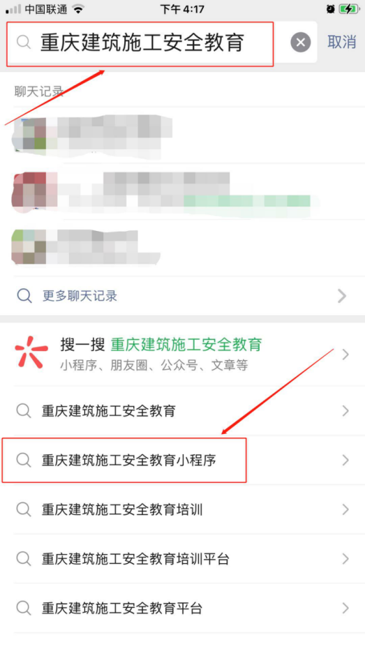 一、打开微信,点击搜索输入“重庆建筑施工安全教育”,找到并点击“重庆建筑施工安全教育小程序”,进入该小程序首页。