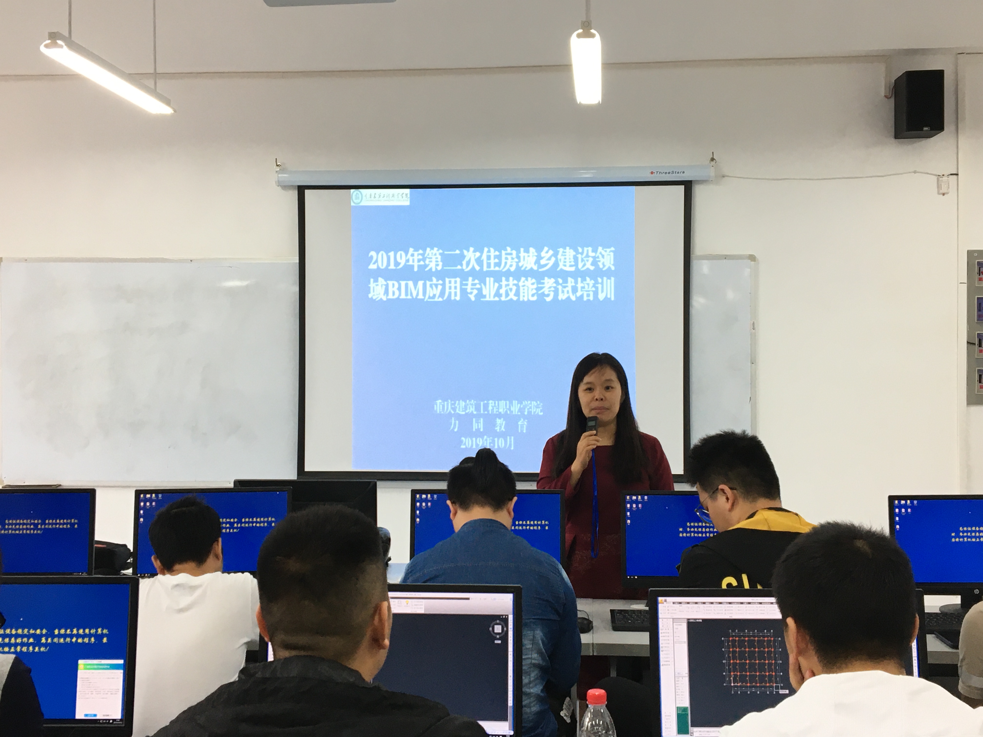 10月13日上午,2019年第二次住房城乡建设领域BIM应用专业技能考试培训在我院创新楼BIM机房顺利开班。BIM机房104台计算机机位座无虚席,全体参训学生准时到课学习。
