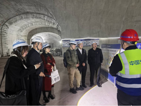 座谈会后,在项目部技术人员的带领下,学院教师一行实地参观了18号线大坪西站施工现场。作为全线关键控制性工程,项目部创新应用“精准微爆”“竖井盾构机”等先进技术,严格遵循“一炮一方案”的精细化管理模式,实现了“微震感、零炮损”的施工目标,其在复杂地质条件下的施工技术创新与安全管控经验,让在场教师深受启发。