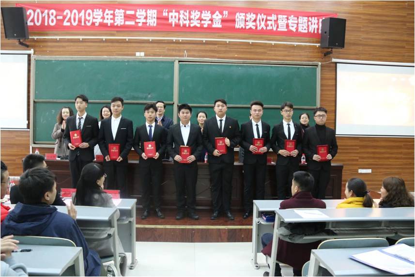 首先,刘院长代表学院对重庆中科建设(集团)有限公司一行表示热烈的欢迎,感谢企业高度重视校企合作和主动担当人才培养的社会责任,对2017级、2018级获奖同学表示祝贺,勉励全体同学继续潜心向学、奋发图强,尽快成长为高素质技术技能人才。随后由重庆中科建设(集团)有限公司副总裁李莉华宣读2018-2019学年第二学期“中科奖学金”表彰决定并进行颁奖。