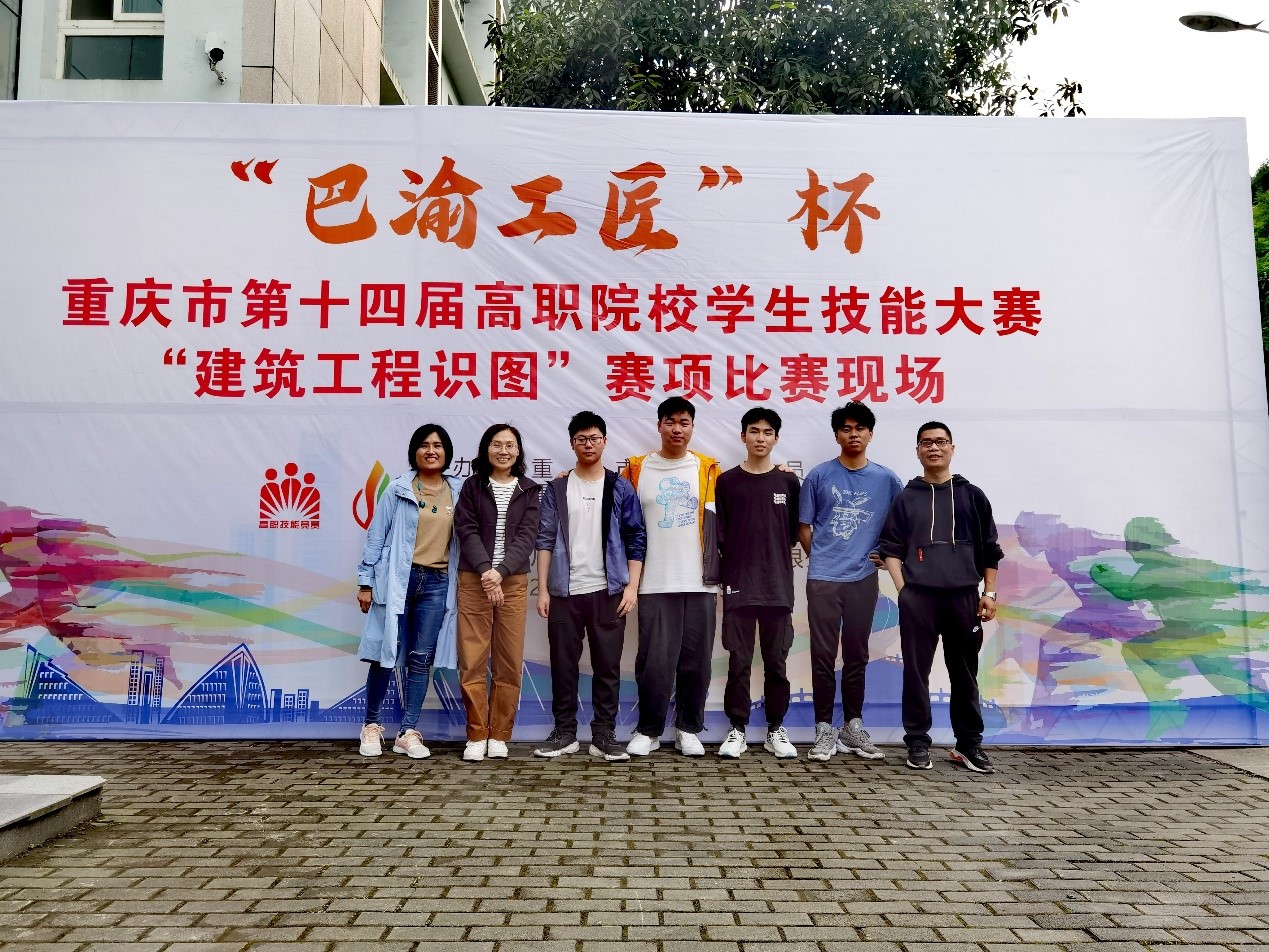 代表我院参赛的队伍来自土木工程系,经过系部3次层层选拔,最终由建筑工程技术专业18级的黄欣欣同学、19级的蔡宛辰和胡家友同学、20级的闫磊同学组成了“老带新”的层级梯队,由覃钢、王丽英、郭盈盈、陈晓平四位老师共同指导。