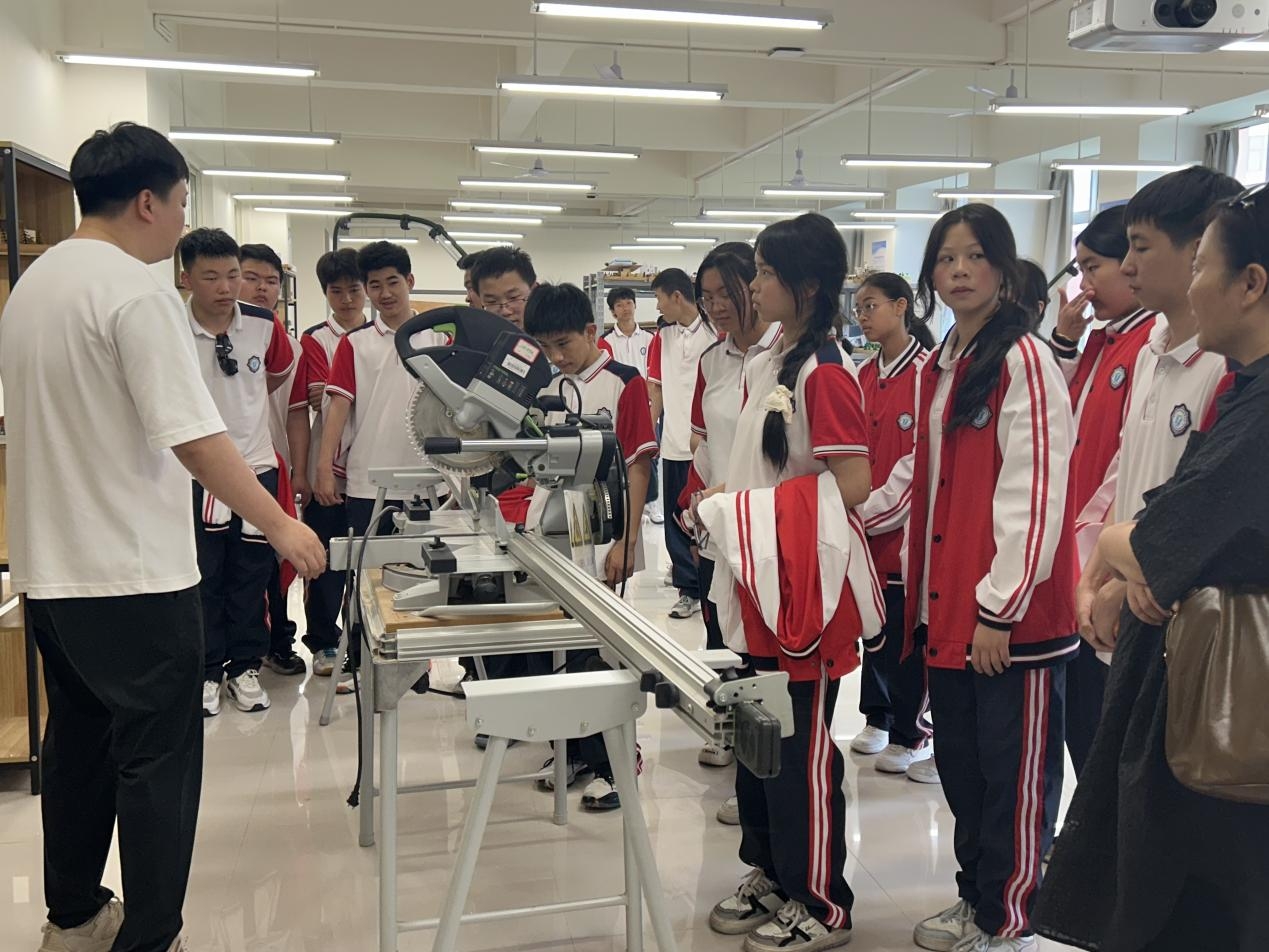 上午9:00-11:00,渝中职业教育中心建筑装饰专业和职普融通实验班共计180余名学生分两批次在设计学院辅导员的带领下,参观了学院VR绘图室、设计制图室、木工实训室、专业制图室、艺术插花与盆景实训场、虚拟仿真实训室等实验实训教室,走进大学课堂,亲自操作VR设备,实景体验设计成果,直观感受科技的魅力。