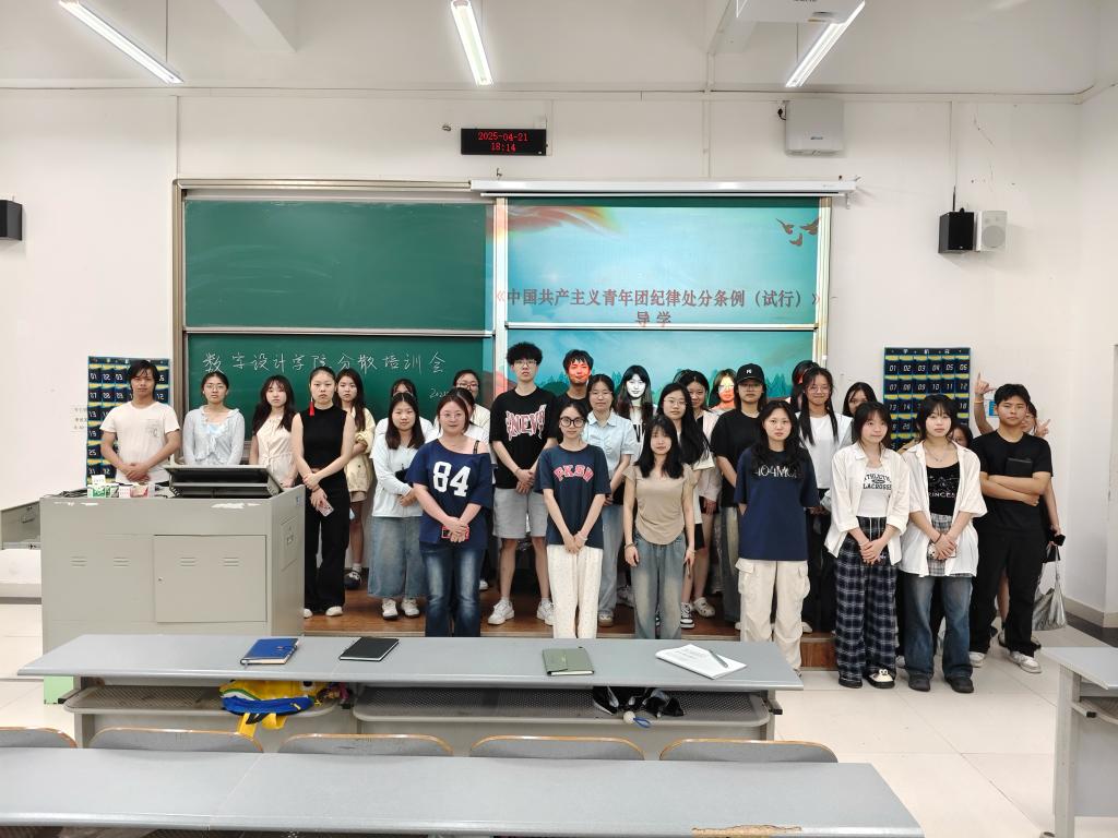2025年4月21日,数字设计学院在5-110举办了一场关于《中国共产主义青年团纪律处分条例(试行)》的专题培训会。此次培训旨在加强青年团员对团纪团规的理解,提升纪律意识,确保团的严肃性和权威性。