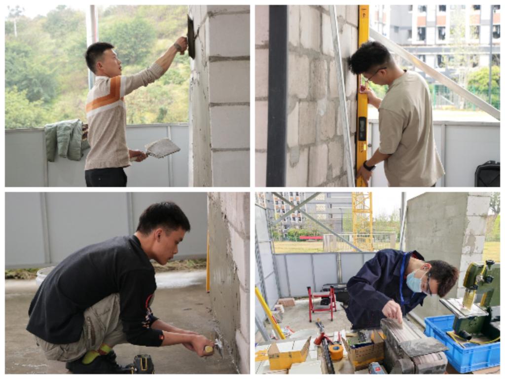 本次竞赛为瓷砖镶贴单人赛,选手需在6小时内用不同颜色瓷砖,通过切割拼花并利用瓷砖胶镶贴完成指定图案的墙面,展现选手建筑装修专业技术功底和艺术审美能力。