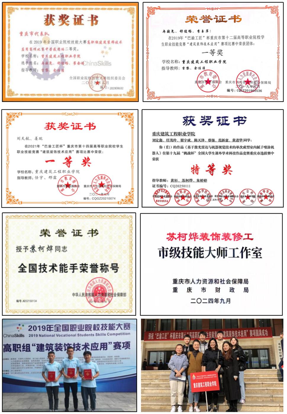 专业与中建装饰集团西部公司、万华生态产业集团股份有限公司、重庆柏叶建筑设计有限公司等企业深度合作,建立校外实践基地,共同开展了多项合作项目;校内配备VR绘图实训室、专业机房、工程体验馆、设计绘图室、模型制作实训室、木工实训室等实践教学场所,支持项目化教学与跨专业协作。近年来,学生在全国职业院校技能大赛建筑装饰数字化施工赛项、全国院校室内设计技能大赛、重庆市职业院校技能大赛等赛事中多次获奖。