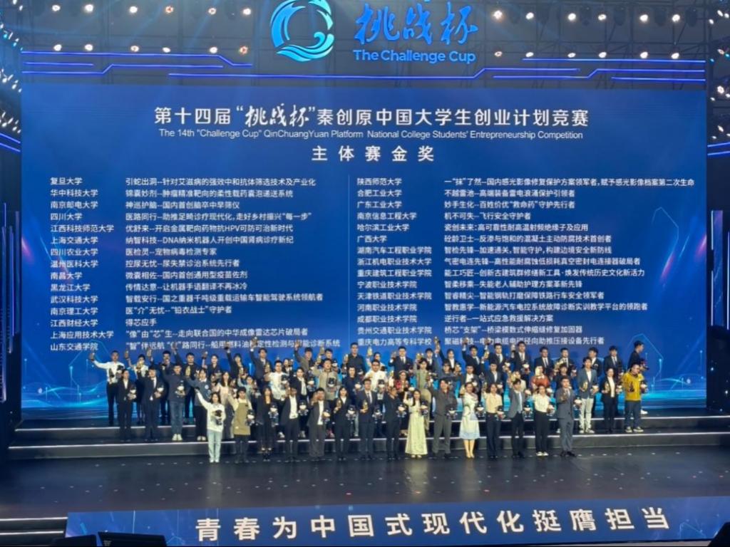 据悉,本次大赛自2024年6月份启动以来,共吸引来自2700余所高校的300多万名学生参与,累计提交39万余个创新创业项目。经过校级初赛、省(市)级复赛,共有来自412所国内高校,14所国际高校的839个项目进入全国决赛终评。在总决赛中,我校制造学院“能工巧匠”项目在主体赛中斩获国赛金奖,这是我校在全国“挑战杯”赛事上的历史性突破!同时,制造学院“风驰电测”、交通学院“智隧慧眼”两个科技类项目也在“一带一路”国际赛项中脱颖而出,获得国赛铜奖。