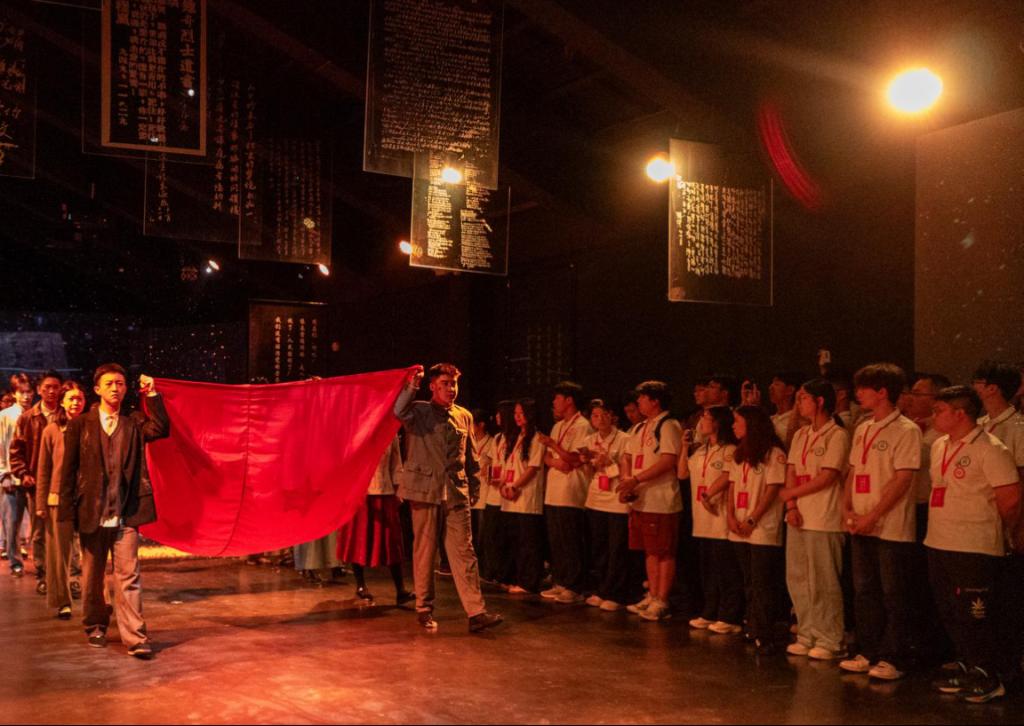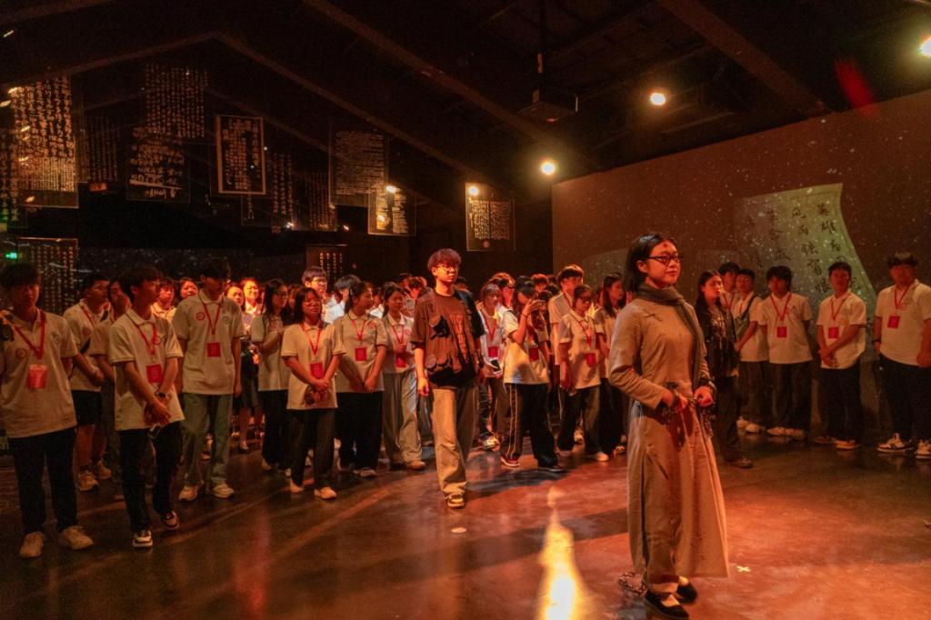10时许,师生们前往红岩红剧场观看情景剧《黎明之前》。该剧以红岩英烈的家书、事迹、诗作为主线,串起了血雨腥风、铁骨柔情的慷慨悲歌,全体师生在沉浸式体验中,被江竹筠、黄显声、王朴等革命烈士为革命事业英勇斗争、壮烈牺牲及毁家纾难的故事深深打动。剧情跌宕起伏,表演真挚感人,革命先烈们的英勇事迹令每个人肃然起敬。