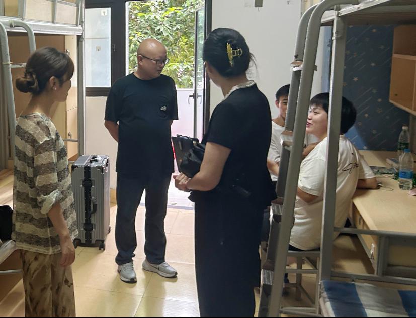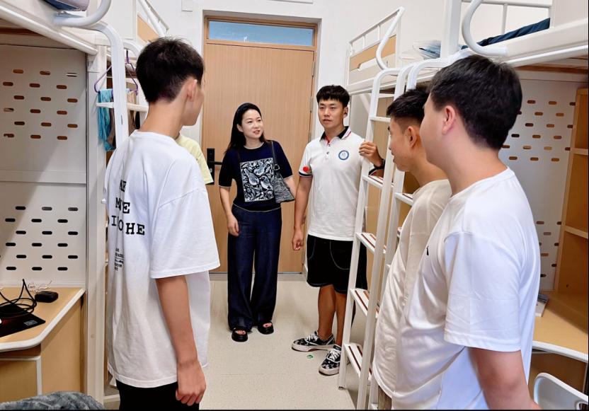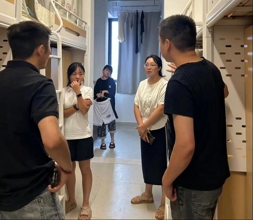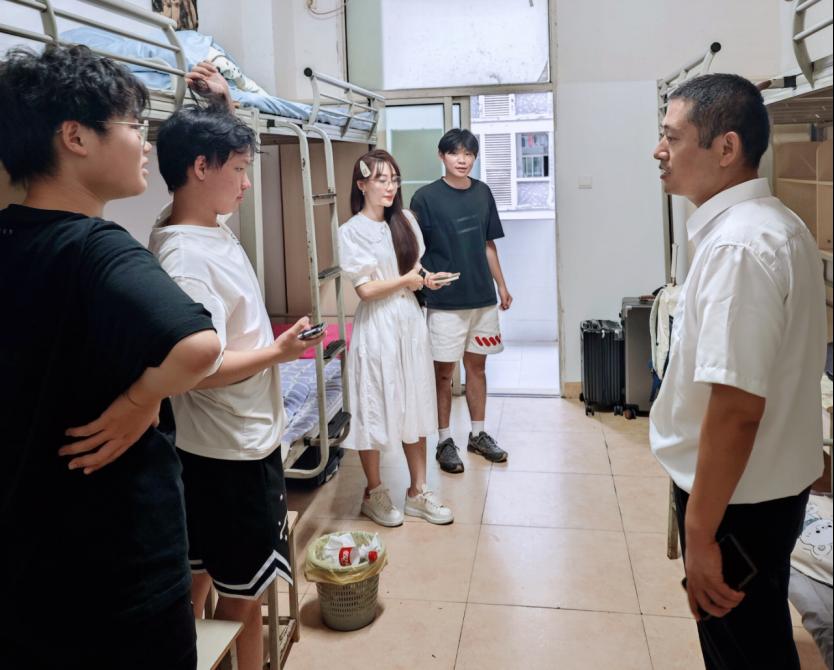 郭光亮与学生们热情交流,细致询问大家初入校园的学习安排、生活需求以及对宿舍环境的适应情况。他鼓励同学们尽快明确学习目标,做好学业规划,合理利用时间,扎实提升专业能力,同时叮嘱同学们要关注身心健康,保持良好作息,积极参加体育锻炼,遇到困难及时向学院和学校反映。